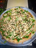Traditional crust topped with romaine lettuce, grated cheese, grilled chicken and our tangy Caesar dressing.